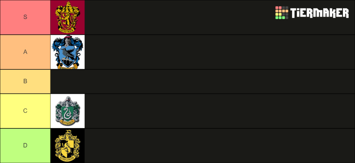 . Modify tier labels, colors or position through the action bar on the right. Welcome to r/HarryPotter, the place where fans from around the world can meet and discuss everything in the Harry Potter universe! Be sorted, earn house points, debate which actor portrayed Dumbledore the best and finally get some closure for your Post-Potter Depression.